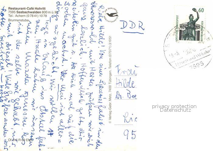 72654369 alte Postkarte Sasbachwalden Restaurant Cafe Hohritt Brunnenstube postalisch gelaufen Erhaltung siehe scans [WerneD78] KatCode: 11110008317118