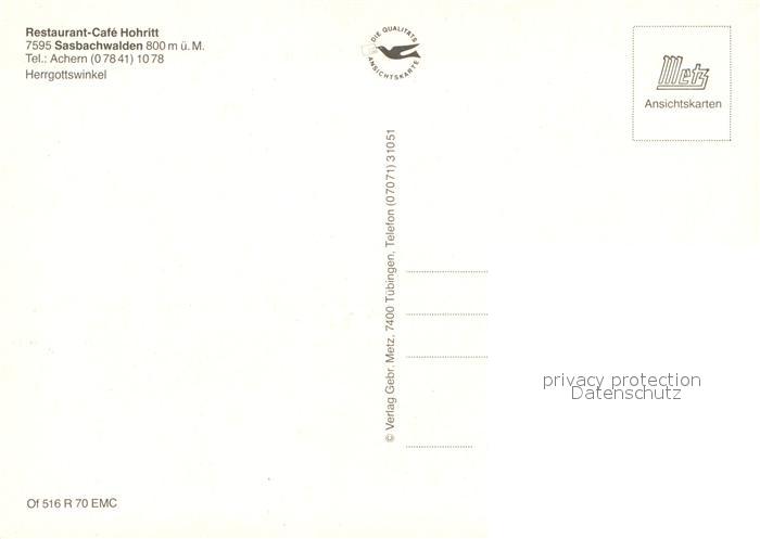 73152585 Sasbachwalden Restaurant Cafe Hohritt Hergottswinkel postalisch nicht gelaufen Erhaltung siehe scans [FriedD77] KatCode: 11110008317118