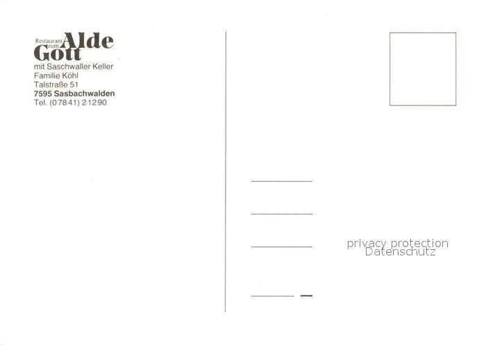 73169175 Sasbachwalden Restaurant Zum Alde Gott postalisch nicht gelaufen Erhaltung siehe scans [KathaD81] KatCode: 11110008317118