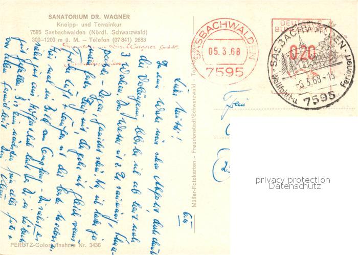 73036431 alte Postkarte Sasbachwalden Sanatorium Doktor Wagner postalisch gelaufen Erhaltung siehe scans [KathaD81] KatCode: 11110008317118