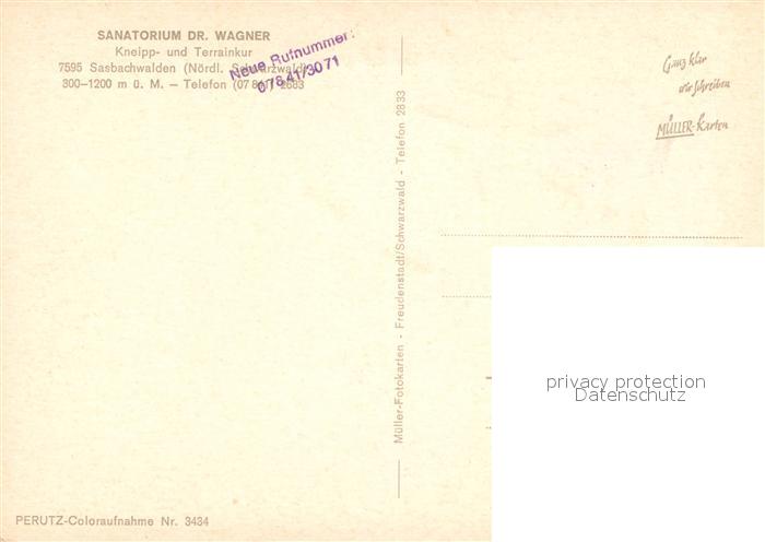 72947344 Sasbachwalden Sanatorium Dr Wagner postalisch nicht gelaufen Erhaltung siehe scans [WerneD78] KatCode: 11110008317118