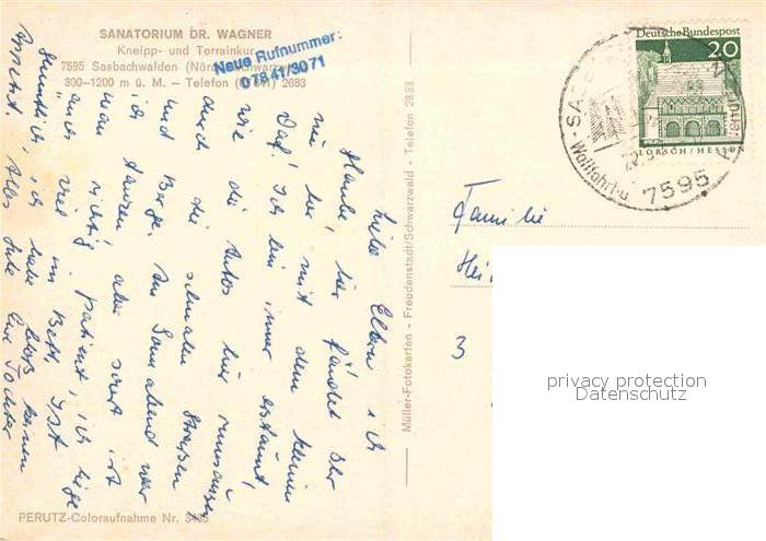 72871291 alte Postkarte Sasbachwalden Sanatorium Dr. Wagner postalisch gelaufen Erhaltung siehe scans [LiesaD40] KatCode: 11110008317118