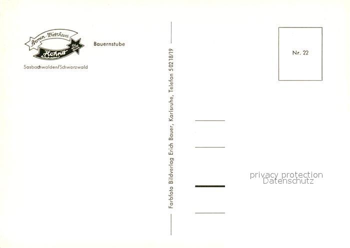 73609043 Sasbachwalden Sternen Wirtshaus Hohritt Bauernstube postalisch nicht gelaufen Erhaltung siehe scans [WerneD78] KatCode: 11110008317118