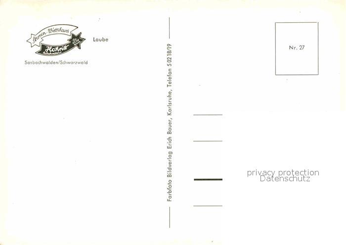 72885686 Sasbachwalden Sternen Wirtshaus Hohritt Laube postalisch nicht gelaufen Erhaltung siehe scans [FriedD77] KatCode: 11110008317118