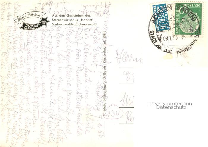 73129674 alte Postkarte Sasbachwalden Sternenwirtshaus Hohritt postalisch gelaufen Erhaltung siehe scans [NatalD47] KatCode: 11110008317118