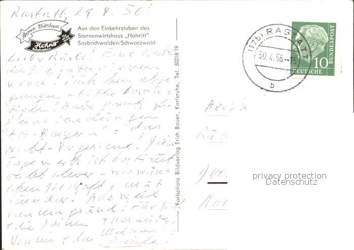 72403105 alte Postkarte Sasbachwalden Sternenwirtshaus Hohritt postalisch gelaufen Erhaltung siehe scans KatCode: 11110008317118