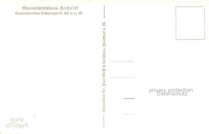 73762360 Sasbachwalden Sternenwirtshaus Hohritt postalisch nicht gelaufen Erhaltung siehe scans [FriedD77] KatCode: 11110008317118