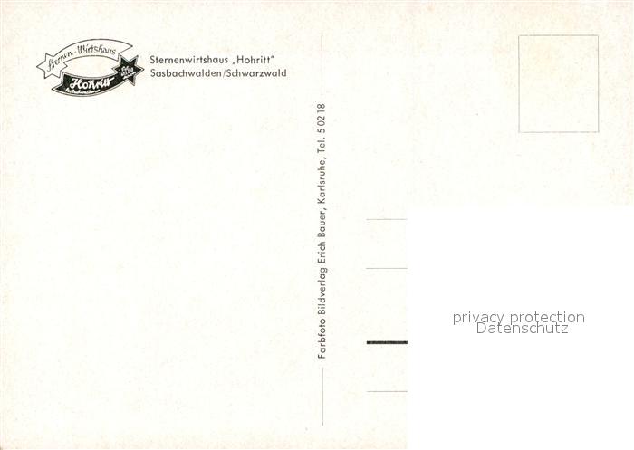 73166974 Sasbachwalden Sternenwirtshaus Hohritt postalisch nicht gelaufen Erhaltung siehe scans [KathaD81] KatCode: 11110008317118