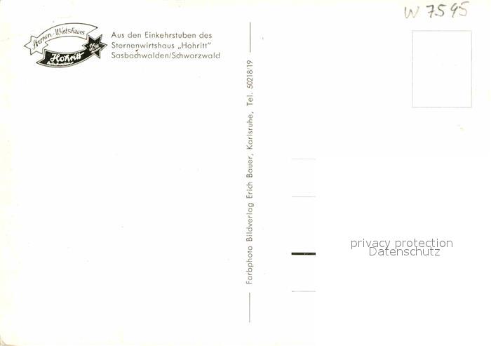72903513 Sasbachwalden Sternenwirtshaus Hohritt Einkehrstuben postalisch nicht gelaufen Erhaltung siehe scans [FriedD77] KatCode: 11110008317118