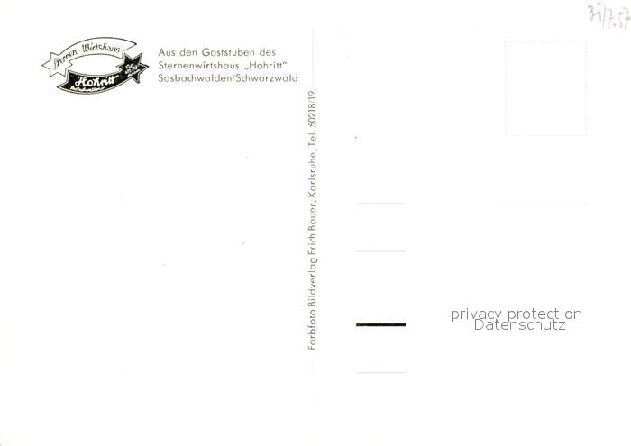 73169181 Sasbachwalden Sternenwirtshaus Hohritt Gaststube postalisch nicht gelaufen Erhaltung siehe scans [KathaD81] KatCode: 11110008317118
