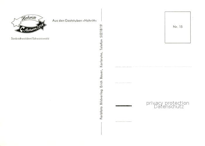 73169180 Sasbachwalden Sternenwirtshaus Hohritt Gaststube postalisch nicht gelaufen Erhaltung siehe scans [KathaD81] KatCode: 11110008317118