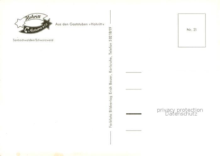 73718043 Sasbachwalden Sternenwirtshaus Hohritt Gaststube postalisch nicht gelaufen Erhaltung siehe scans [WerneD78] KatCode: 11110008317118