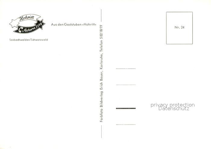 73717992 Sasbachwalden Sternenwirtshaus Hohritt Gaststube postalisch nicht gelaufen Erhaltung siehe scans [WerneD78] KatCode: 11110008317118