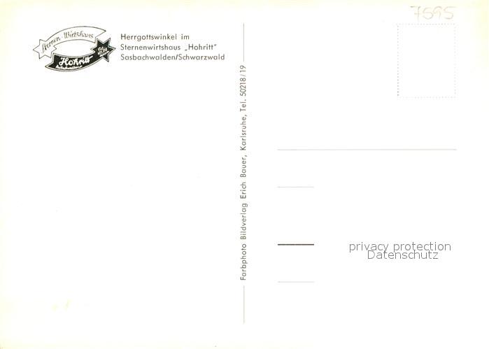 73170692 Sasbachwalden Sternenwirtshaus Hohritt Herrgottswinkel postalisch nicht gelaufen Erhaltung siehe scans [KathaD81] KatCode: 11110008317118