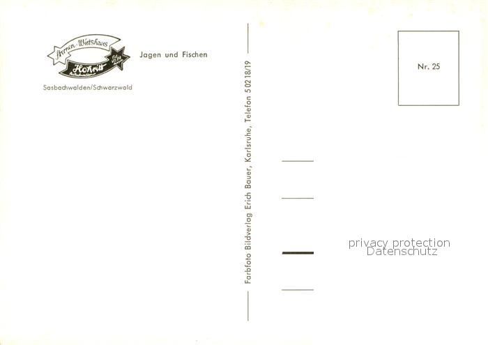 73741521 Sasbachwalden Sternenwirtshaus Hohritt Jagen und Fischen postalisch nicht gelaufen Erhaltung siehe scans [FriedD77] KatCode: 11110008317118