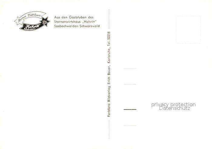 73169153 Sasbachwalden Sternenwirtshaus Hohritt Stube postalisch nicht gelaufen Erhaltung siehe scans [KathaD81] KatCode: 11110008317118
