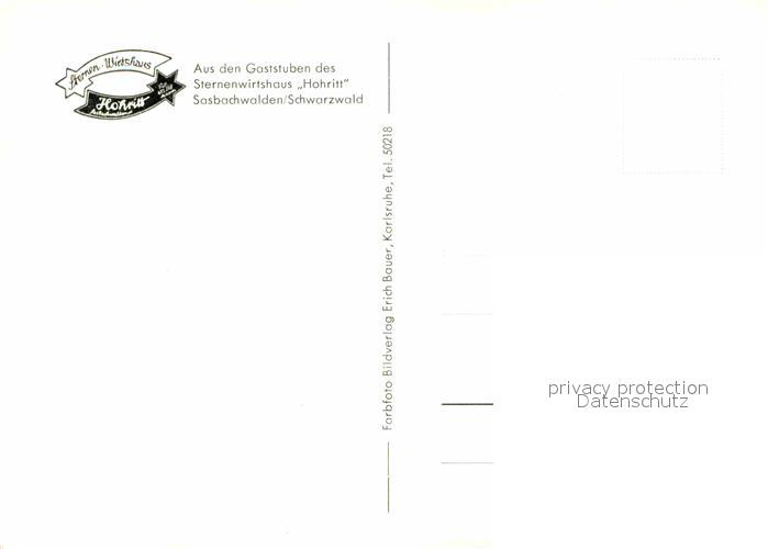 72863493 Sasbachwalden Sternwirtshaus Hohritt postalisch nicht gelaufen Erhaltung siehe scans [NatalD47] KatCode: 11110008317118
