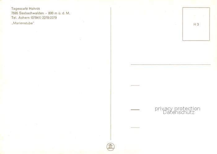 73718139 Sasbachwalden Tagescafe Hohritt postalisch nicht gelaufen Erhaltung siehe scans [WerneD78] KatCode: 11110008317118