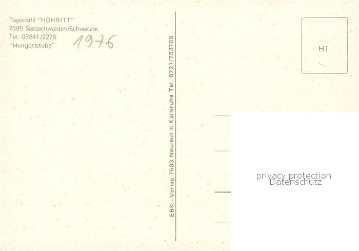 73110345 Sasbachwalden Tagescafe Hohritt postalisch nicht gelaufen Erhaltung siehe scans [NatalD47] KatCode: 11110008317118