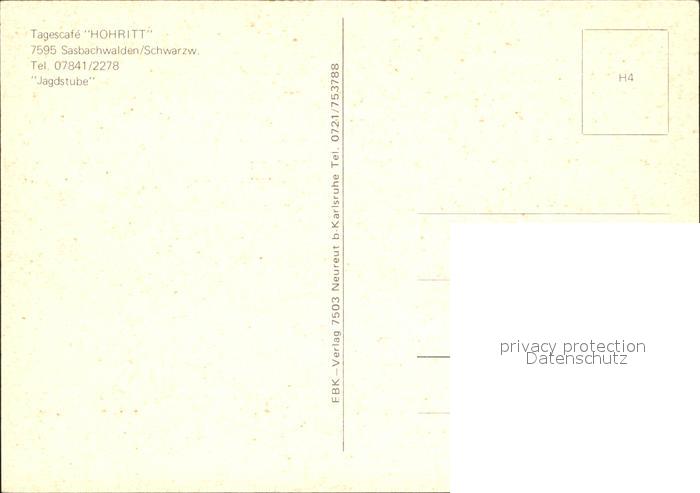 72101090 Sasbachwalden TagesCafe Hohritt postalisch nicht gelaufen Erhaltung siehe scans KatCode: 11110008317118