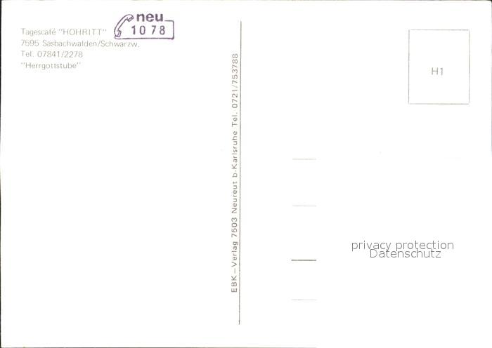 72226865 Sasbachwalden Tagescafe Hohritt Herrgottstube postalisch nicht gelaufen Erhaltung siehe scans KatCode: 11110008317118