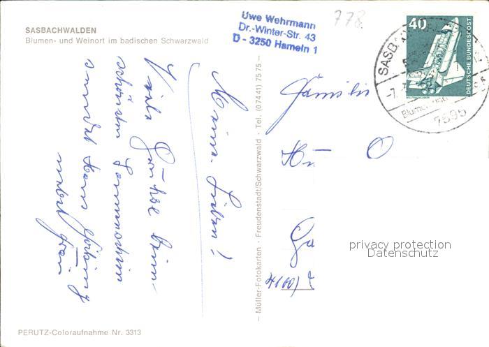 72606489 alte Postkarte Sasbachwalden Tracht postalisch gelaufen Erhaltung siehe scans [NatalD47] KatCode: 11110008317118