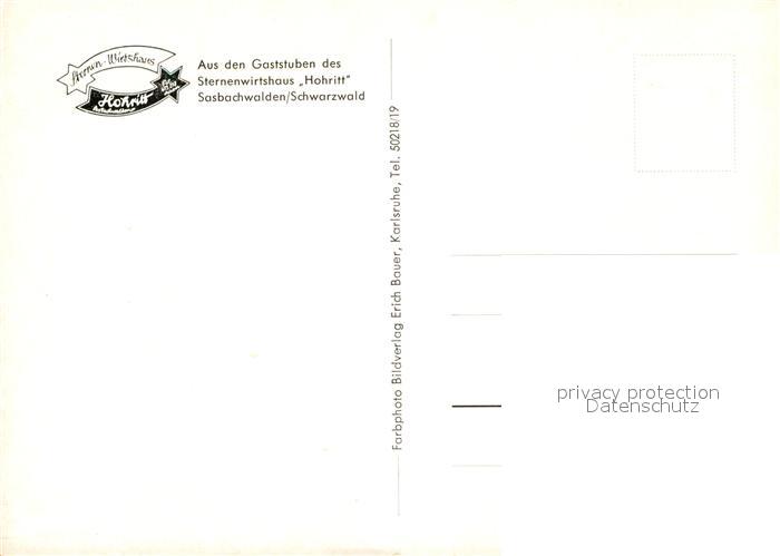 73129546 Sasbachwalden Wirtshaus Hohritt postalisch nicht gelaufen Erhaltung siehe scans [PaolaD17] KatCode: 11110008317118