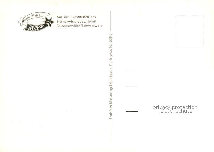73090247 Sasbachwalden Wirtshaus Hohritt postalisch nicht gelaufen Erhaltung siehe scans [PaolaD17] KatCode: 11110008317118