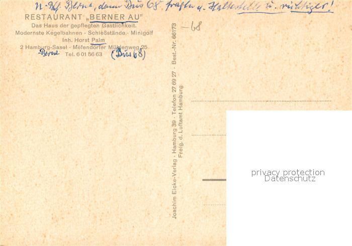 73708002 Sasel Hamburg Restaurant Berner Au Fliegeraufnahme postalisch nicht gelaufen Erhaltung siehe scans [WerneD78] KatCode: 11110002000000