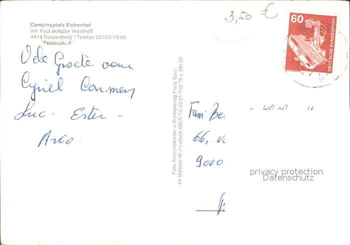 72231241 alte Postkarte Sassenberg Campingplatz Eichenhof postalisch gelaufen Erhaltung siehe scans KatCode: 11110005570036