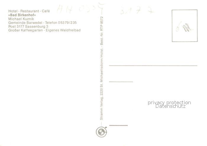 73666188 Sassenburg Hotel Restaurant Caf? Bad Birkenhof postalisch nicht gelaufen Erhaltung siehe scans [LiesaD40] KatCode: 11110003151025