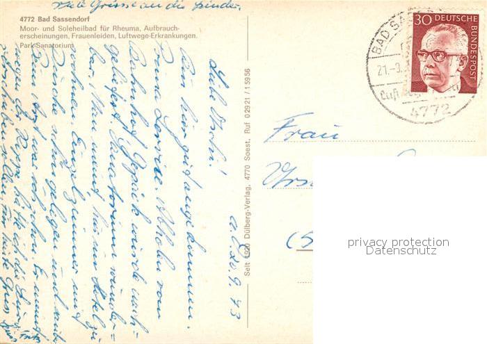 72948508 alte Postkarte Sassendorf Bad Parksanatorium postalisch gelaufen Erhaltung siehe scans [KathaD81] KatCode: 11110005974008