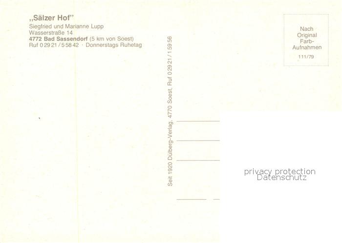 73026564 Sassendorf Bad Saelzer Hof postalisch nicht gelaufen Erhaltung siehe scans [KathaD81] KatCode: 11110005974008