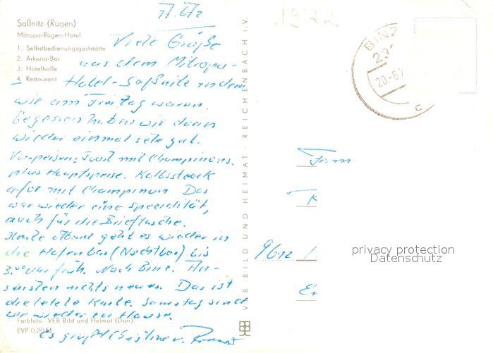 73072892 alte Postkarte Sassnitz Ostseebad Ruegen Arkona Bar Restaurant postalisch gelaufen Erhaltung siehe scans [KathaD81] KatCode: 11110013061035