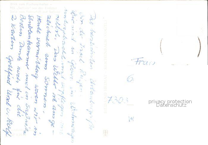 72496860 alte Postkarte Sassnitz Ostseebad Ruegen Blick zum Fischereihafen MS Sassnitz Faehrschiff postalisch gelaufen Erhaltung siehe scans KatCode: 11110013061035