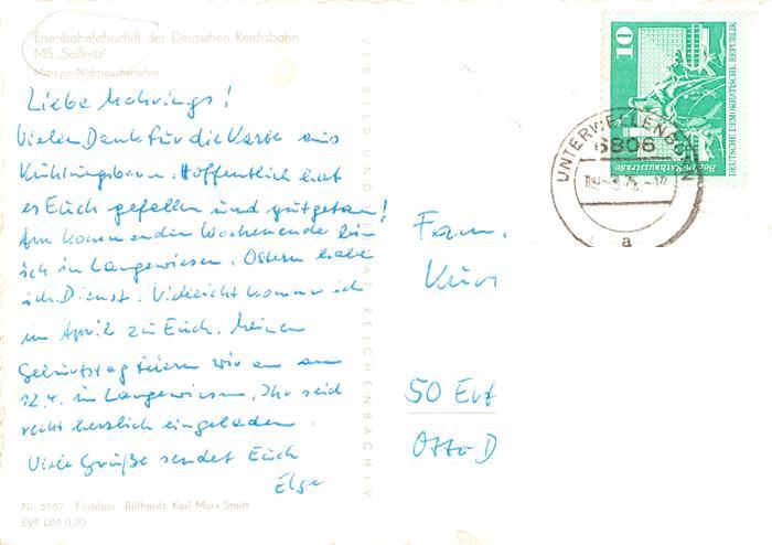 73924244 alte Postkarte Sassnitz Ostseebad Ruegen Eisenbahnfaehrschiff der Deutschen Reichsbahn MS Sassnitz postalisch gelaufen Erhaltung siehe scans [FriedD77] KatCode: 11110013061035