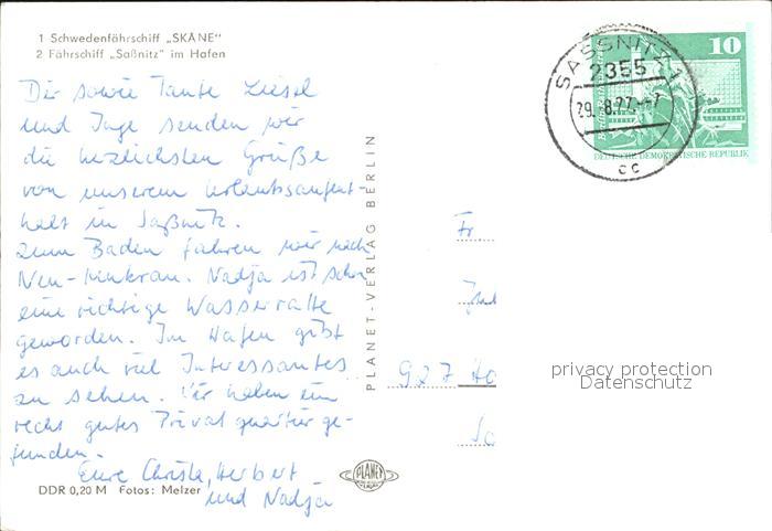 72432231 alte Postkarte Sassnitz Ostseebad Ruegen Faehren Fliegeraufnahme Hafen postalisch gelaufen Erhaltung siehe scans KatCode: 11110013061035