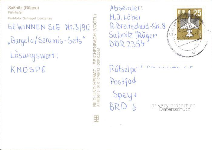 72391269 alte Postkarte Sassnitz Ostseebad Ruegen Faehrhafen postalisch gelaufen Erhaltung siehe scans KatCode: 11110013061035