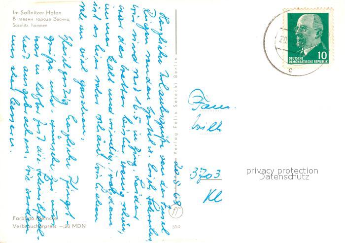 73068458 alte Postkarte Sassnitz Ostseebad Ruegen Fischereihafen postalisch gelaufen Erhaltung siehe scans [WerneD78] KatCode: 11110013061035