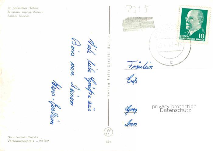 72750689 alte Postkarte Sassnitz Ostseebad Ruegen Hafen postalisch gelaufen Erhaltung siehe scans [KathaD81] KatCode: 11110013061035