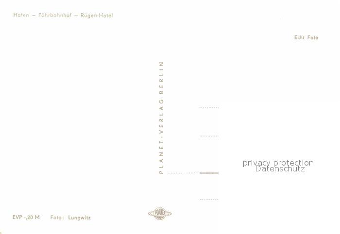 72703253 Sassnitz Ostseebad Ruegen Hafen Faehrbahnhof Ruegen-Hotel postalisch nicht gelaufen Erhaltung siehe scans [AndreD76] KatCode: 11110013061035