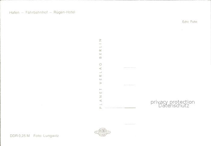 72473989 Sassnitz Ostseebad Ruegen Hafen Faehrbahnhof Ruegen Hotel postalisch nicht gelaufen Erhaltung siehe scans KatCode: 11110013061035