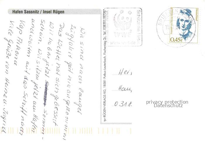 74020658 alte Postkarte SAssNITZ Ostseebad Ruegen Hafen Fliegeraufnahme postalisch gelaufen Erhaltung siehe scans [FriedD77] KatCode: 11110013061035