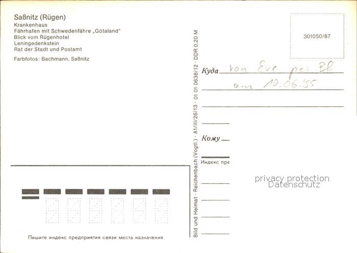 72381599 Sassnitz Ostseebad Ruegen Krankenhaus Faehrhafen mit Schwedenfaehre Goetaland Blick vom Ruegenhotel postalisch nicht gelaufen Erhaltung siehe scans KatCode: 11110013061035