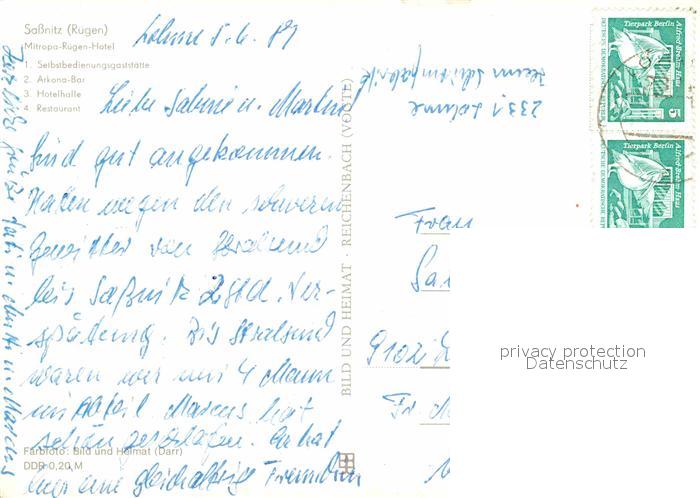 72845214 alte Postkarte Sassnitz Ostseebad Ruegen Mitropa-Ruegen-Hotel postalisch gelaufen Erhaltung siehe scans [PaolaD17] KatCode: 11110013061035