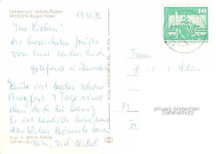 72844624 alte Postkarte Sassnitz Ostseebad Ruegen Mitropa Ruegen Hotel postalisch gelaufen Erhaltung siehe scans [KathaD81] KatCode: 11110013061035