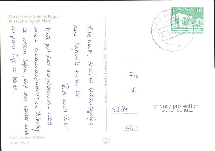 72008334 alte Postkarte Sassnitz Ostseebad Ruegen Mitropa Ruegen-Hotel postalisch gelaufen Erhaltung siehe scans KatCode: 11110013061035