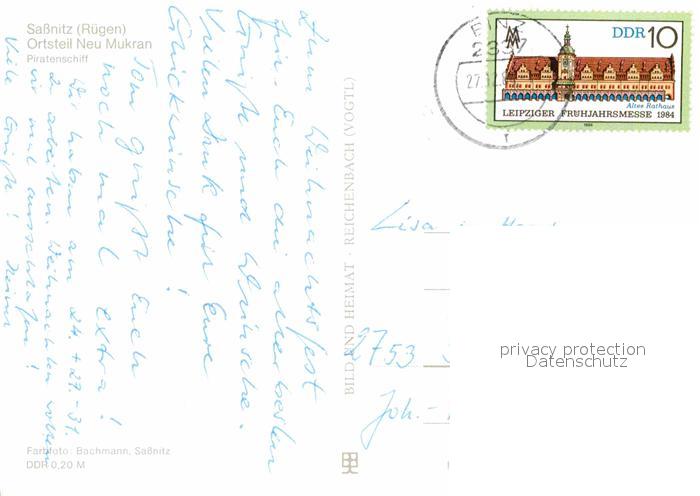 72720855 alte Postkarte Sassnitz Ostseebad Ruegen Mukran Piratenschiff postalisch gelaufen Erhaltung siehe scans [LiesaD40] KatCode: 11110013061035