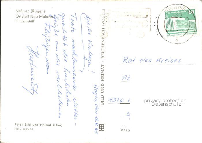 72017812 alte Postkarte Sassnitz Ostseebad Ruegen OT Neu Mukran Piratenschiff Faesser postalisch gelaufen Erhaltung siehe scans KatCode: 11110013061035
