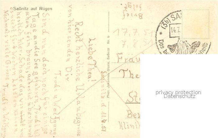 73839179 alte Postkarte Sassnitz Ostseebad Ruegen Panorama postalisch gelaufen Erhaltung siehe scans [WerneD78] KatCode: 11110013061035